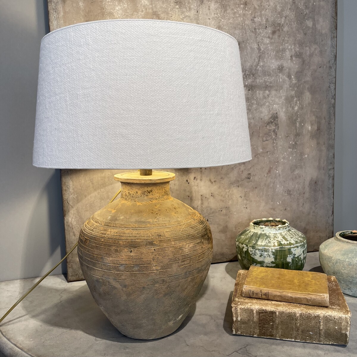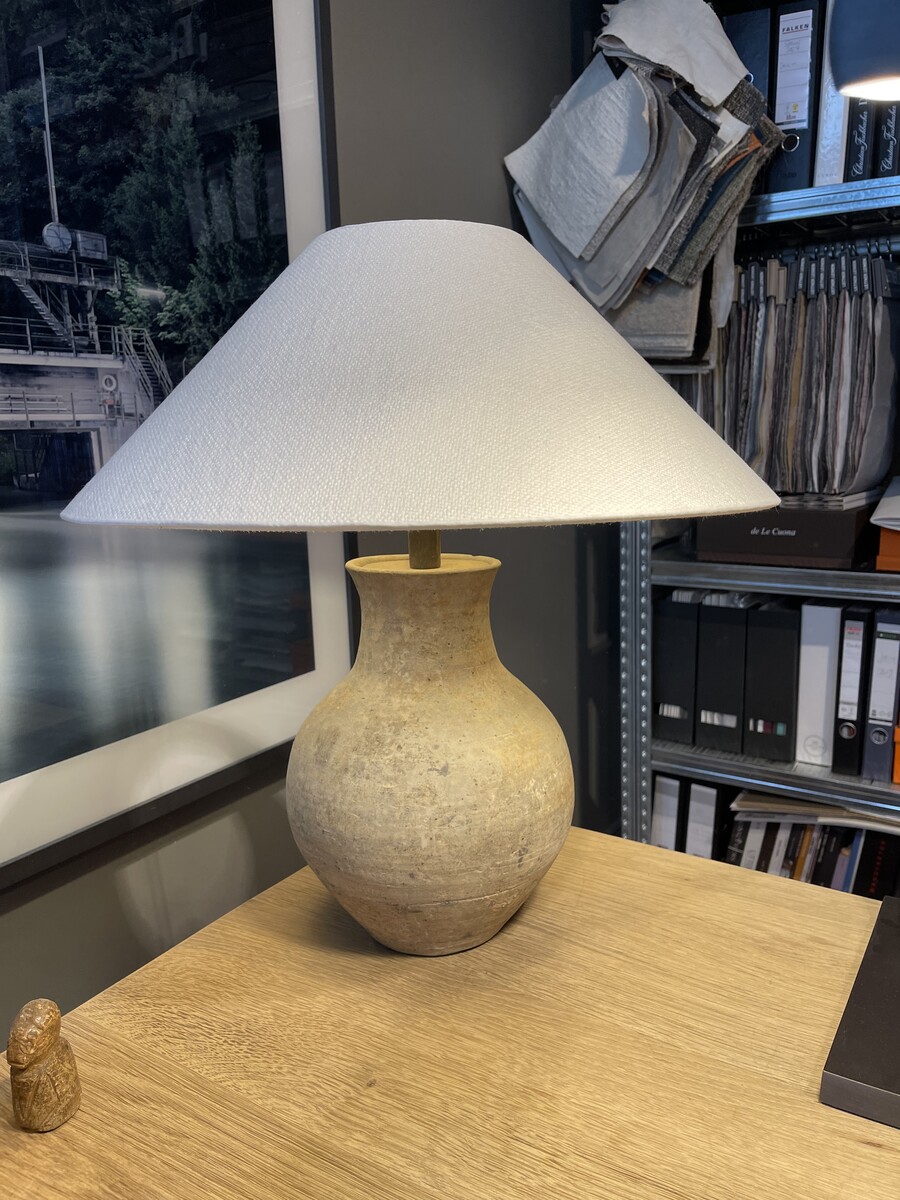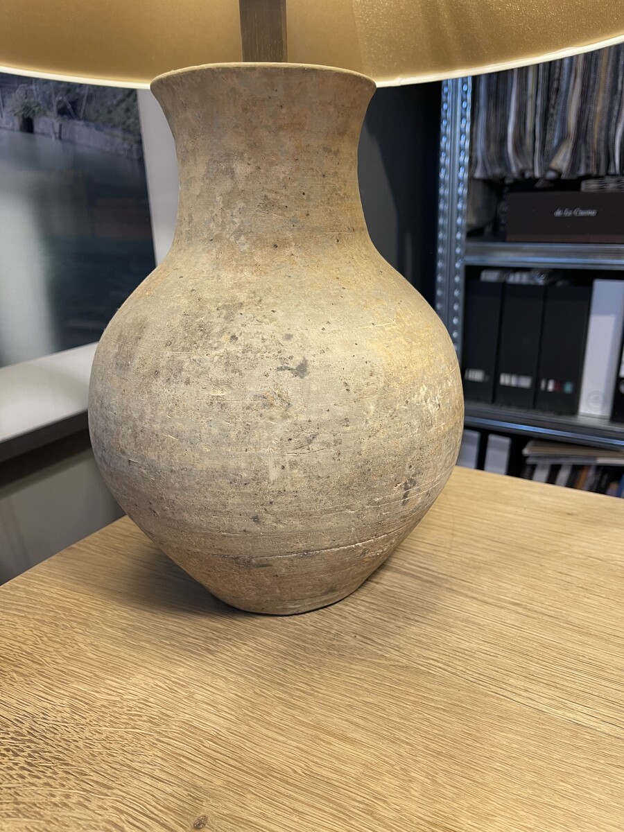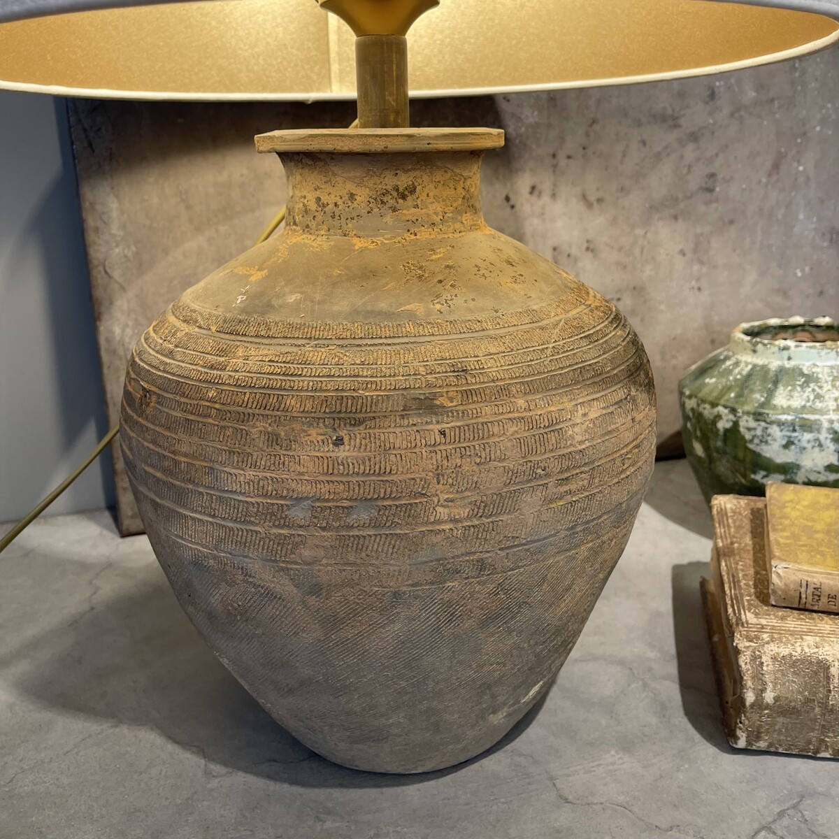 große Reistopf-Lampe mit oliv-brauner Glasur
