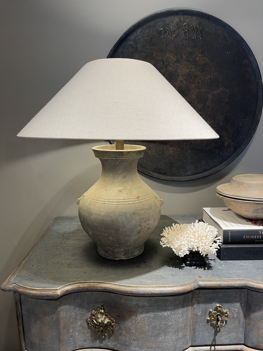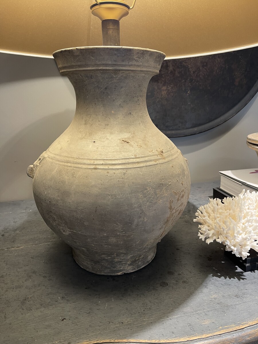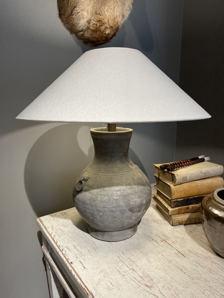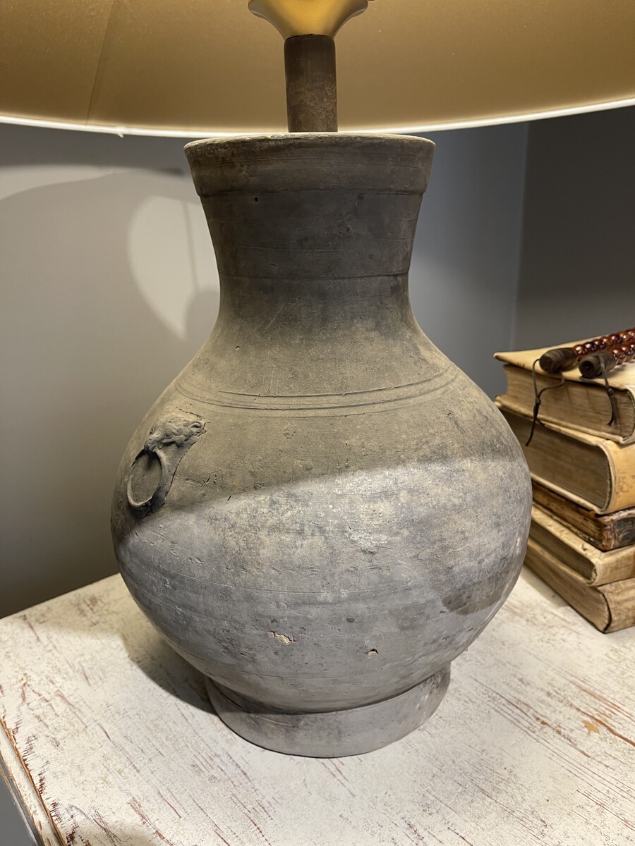 große Reistopf-Lampe mit oliv-brauner Glasur