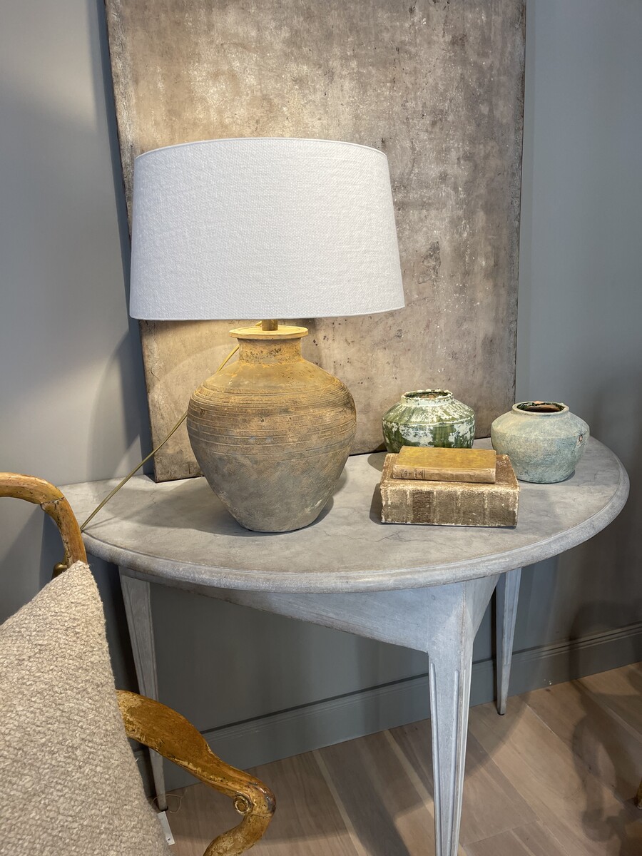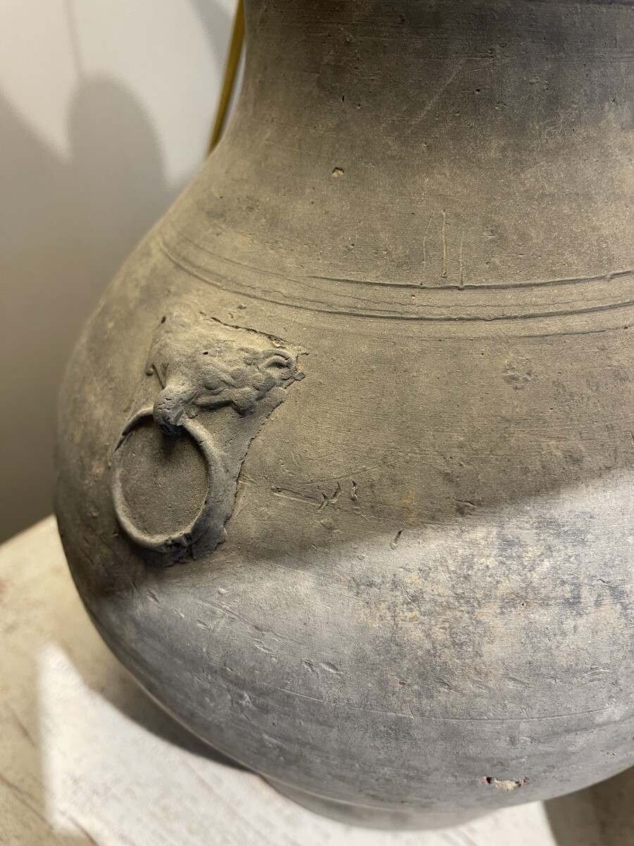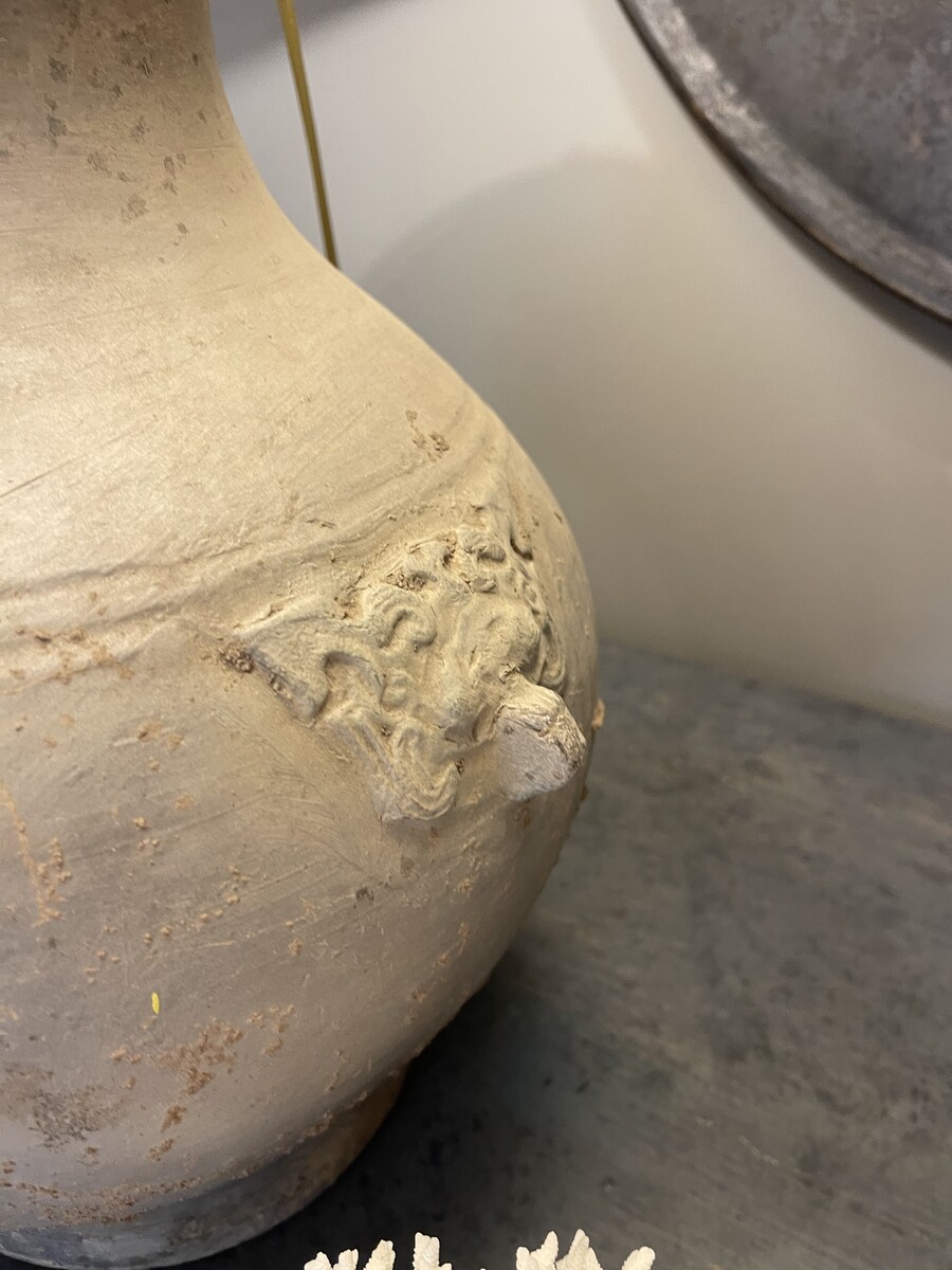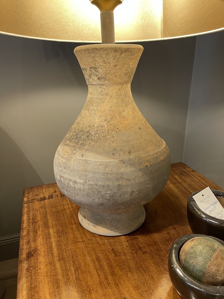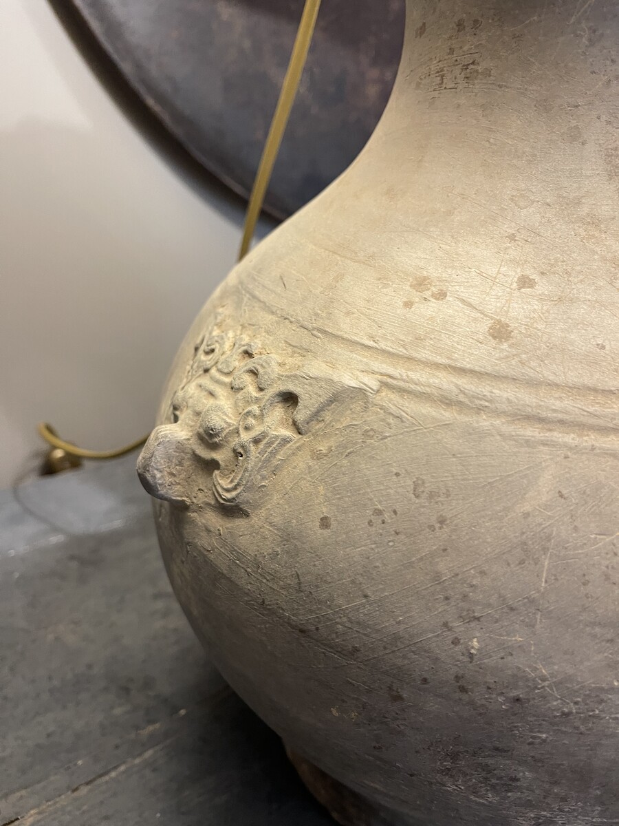 große Reistopf-Lampe mit oliv-brauner Glasur